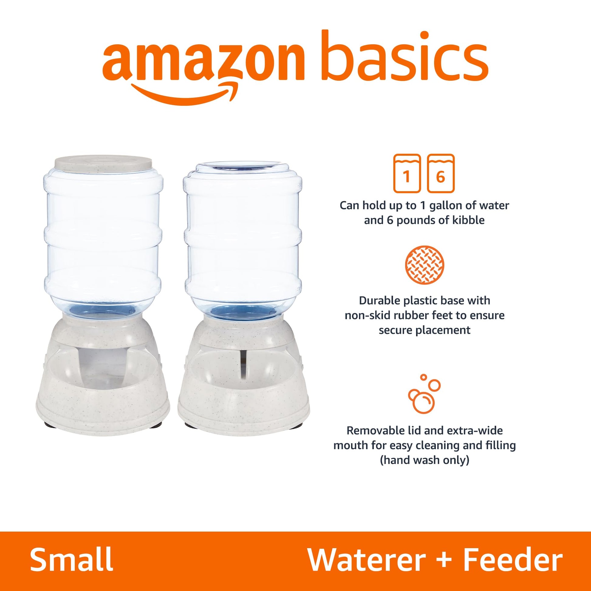 Basics Automatic Dog & Cat Water Dispenser + Gravity Feeder Set – 6lb Food / 1 Gallon Water, Gray (Pack of 2)