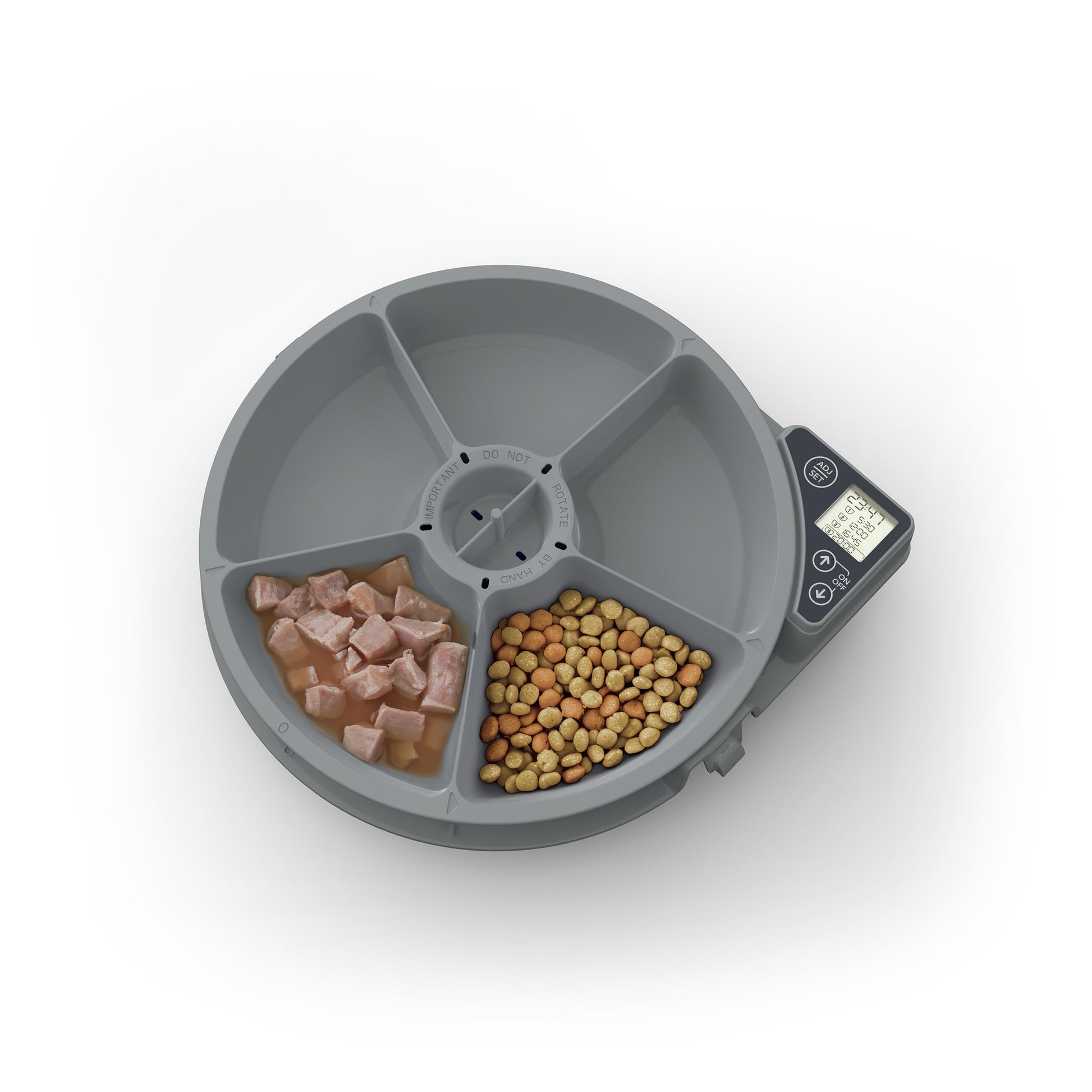 - LARGE FOOD COMPARTMENTS: Five compartments, each holding 11.5 ounces of food, suitable for two cats or a small dog