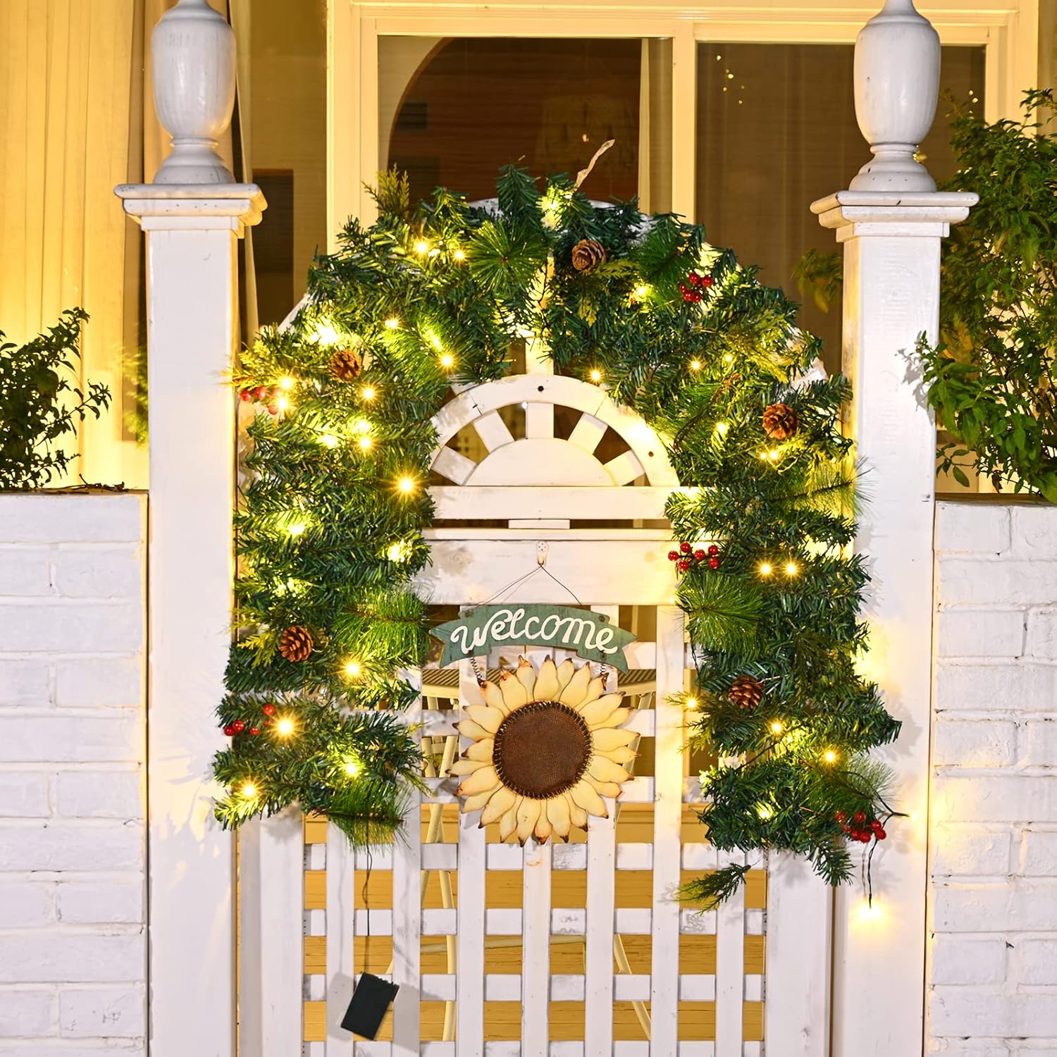 - 🎁【Please Notice】After receiving our products, we need you to use your hands to assemble the rattan into the effect in the picture, add the flowers, berries and lights on. Handmade rattan has a realistic visual effect and feel, adding a gentle holiday atmosphere to your home.
