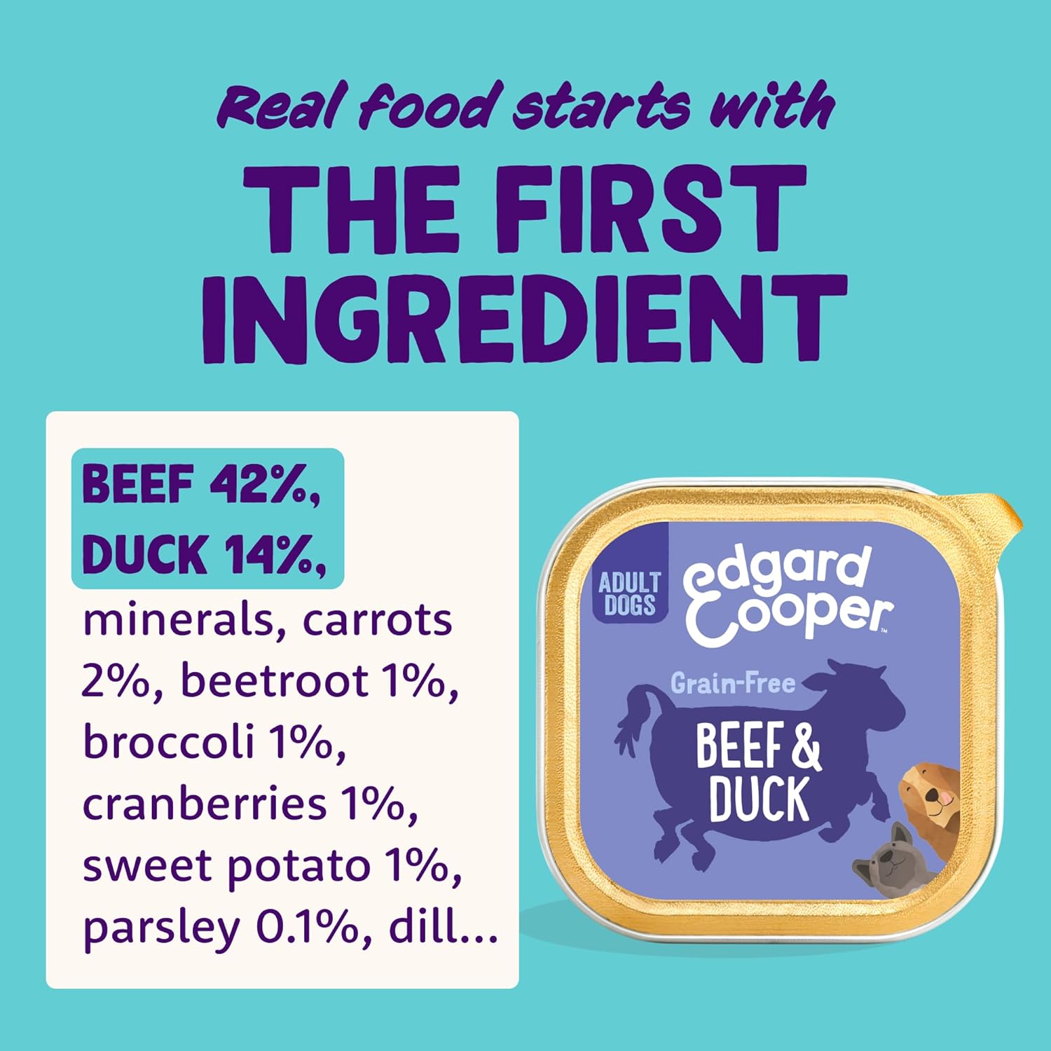 Edgard Cooper Grain-Free Wet Dog Food for Adult Dogs, BeefDuck, Natural Dogs Food in Cup with Fresh Meat Amino Acids, Gluten-Free, High Protein