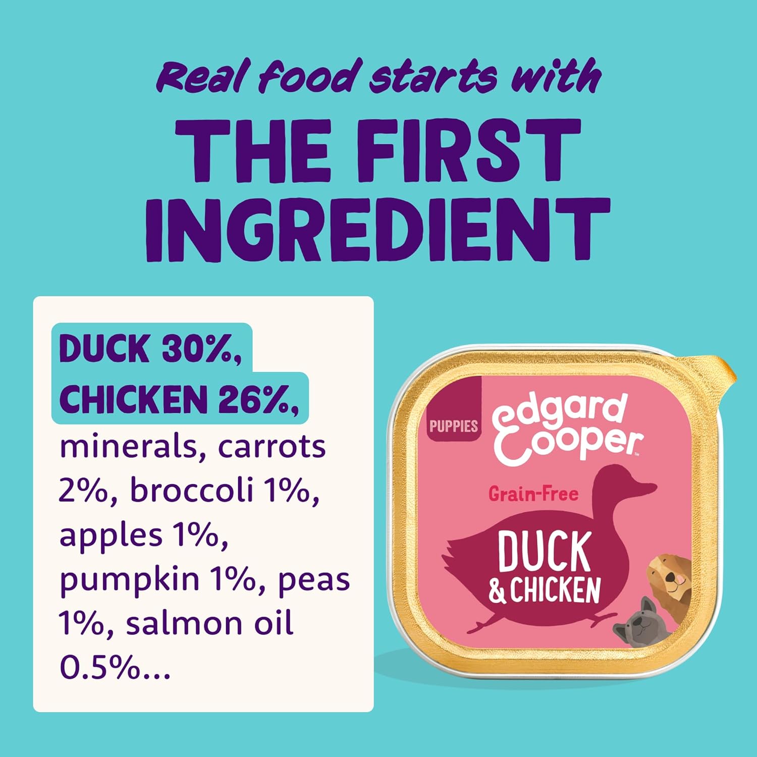 - Natural wet puppy food, packed with fresh duck and chicken