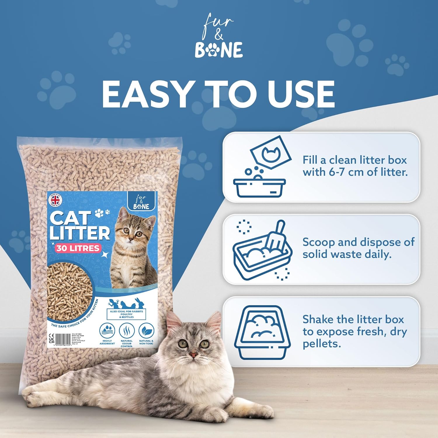 Fur & Bone 1 x 30L Cat Litter - Ultra Absorbent Biodegradable Wooden Pellets, Natural Scent, Odour Control, Soft Bedding for Comfort, Made from Virgin Wood - Scandinavian Timber Aroma