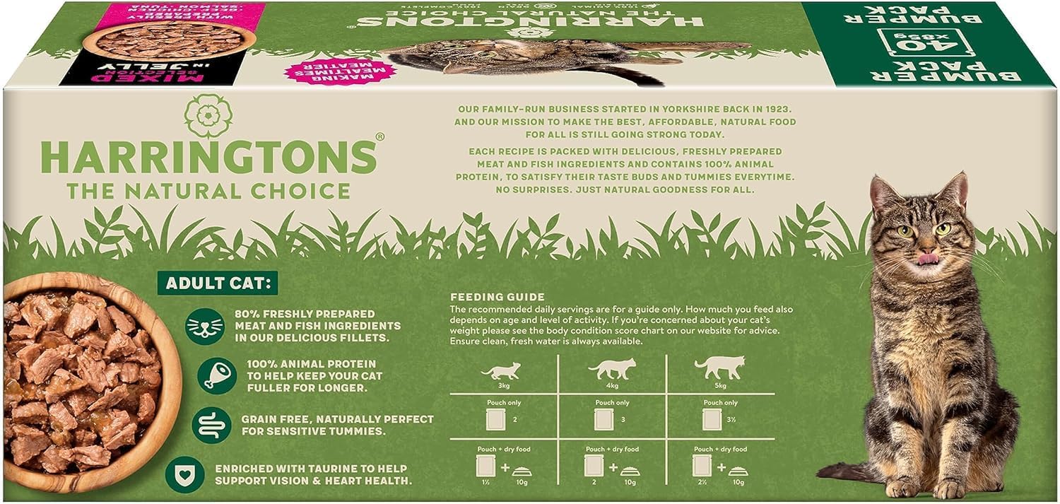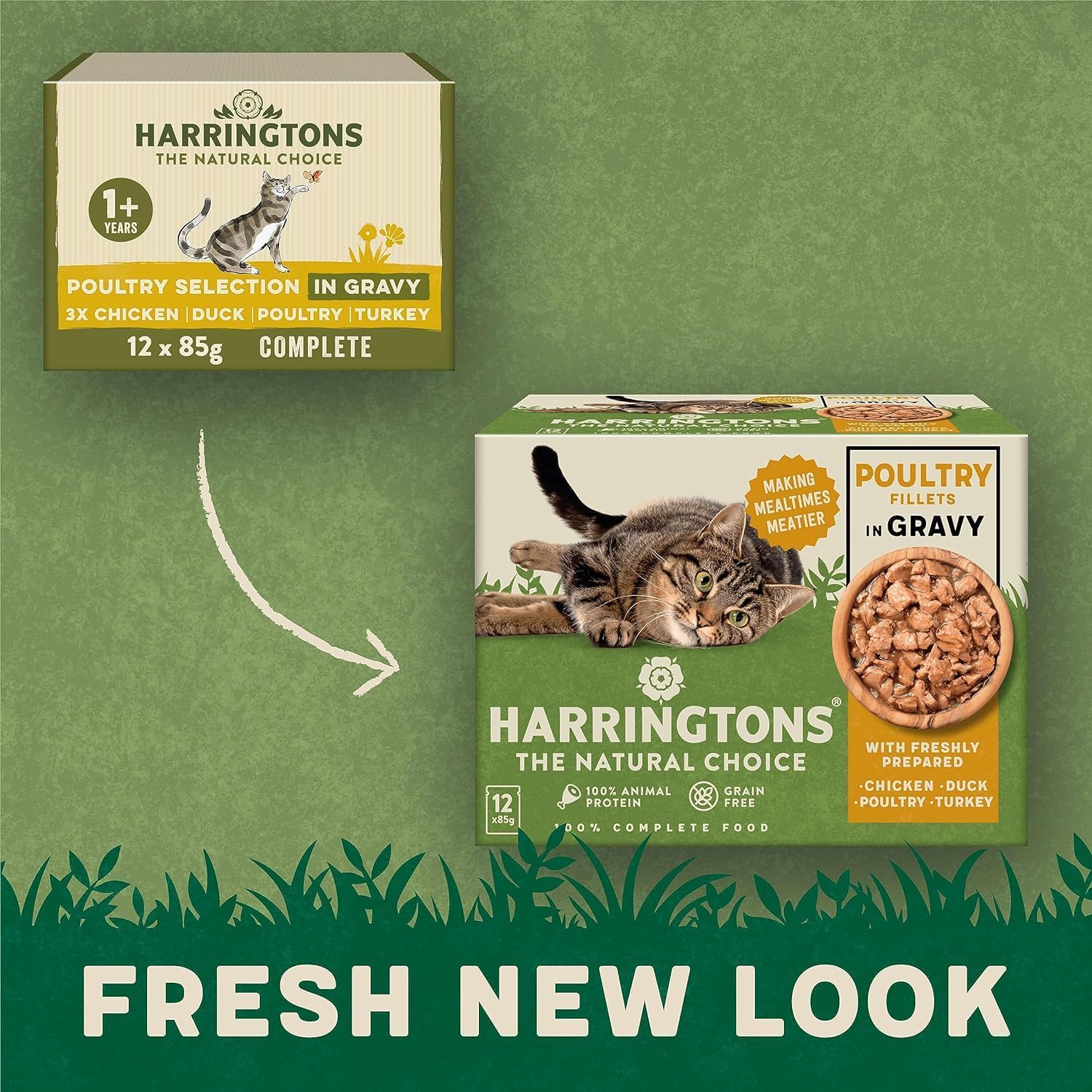 Harringtons Grain Free Wet Cat Food for Adult Cats – Beef, Chicken, Lamb & Turkey in Gravy & Jelly