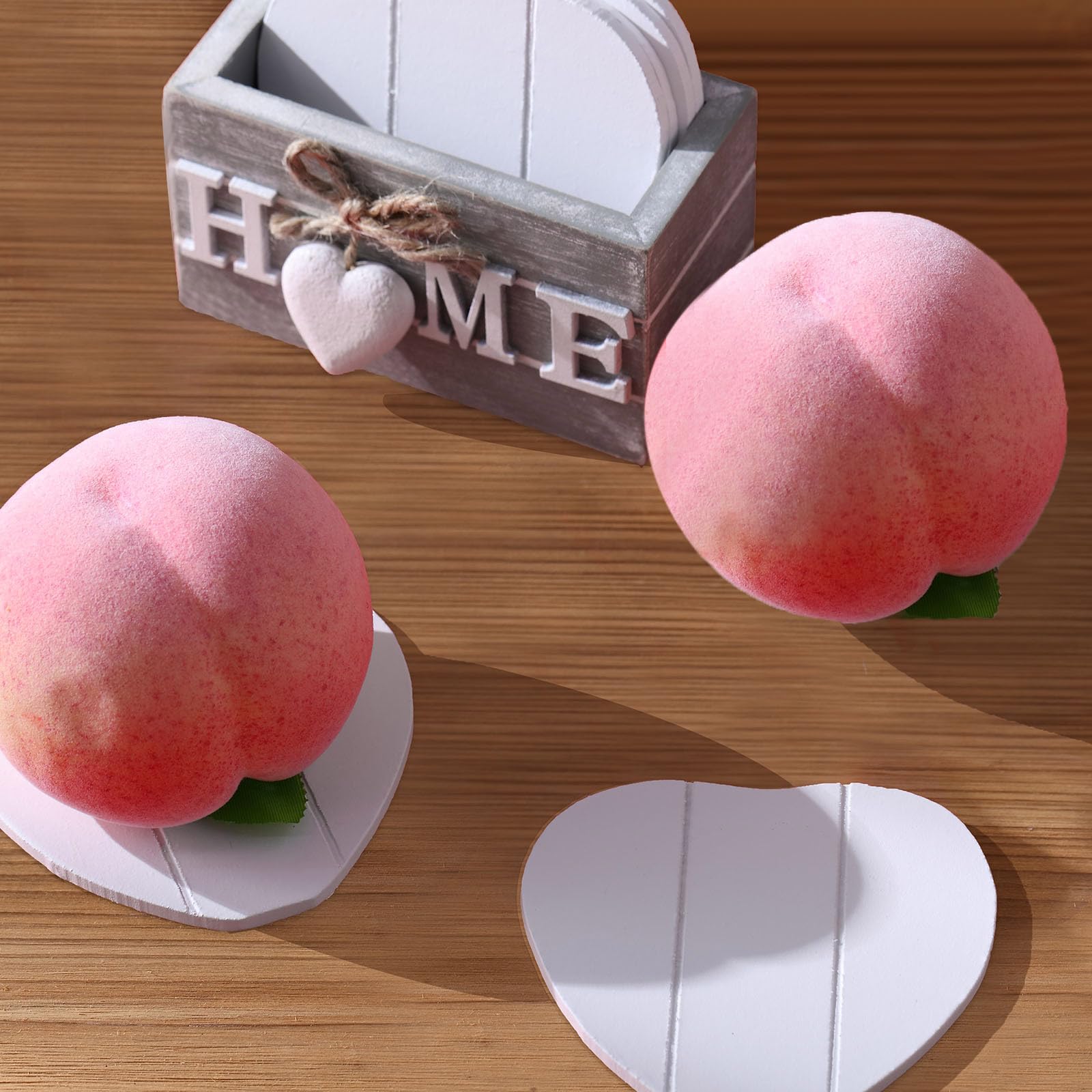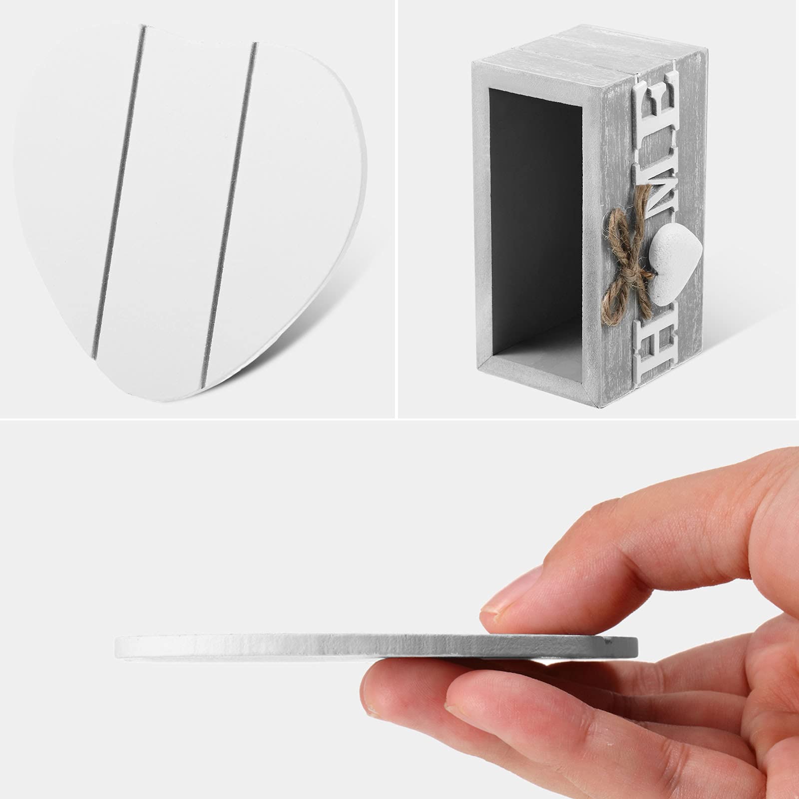 Heartwood Drink Coasters Set of 6, Farmhouse Style with Holder, Funny Designs for Coffee Table Protection, Perfect Housewarming Gifts for New Home Decoration, 4 Inch (Grey,Home)
