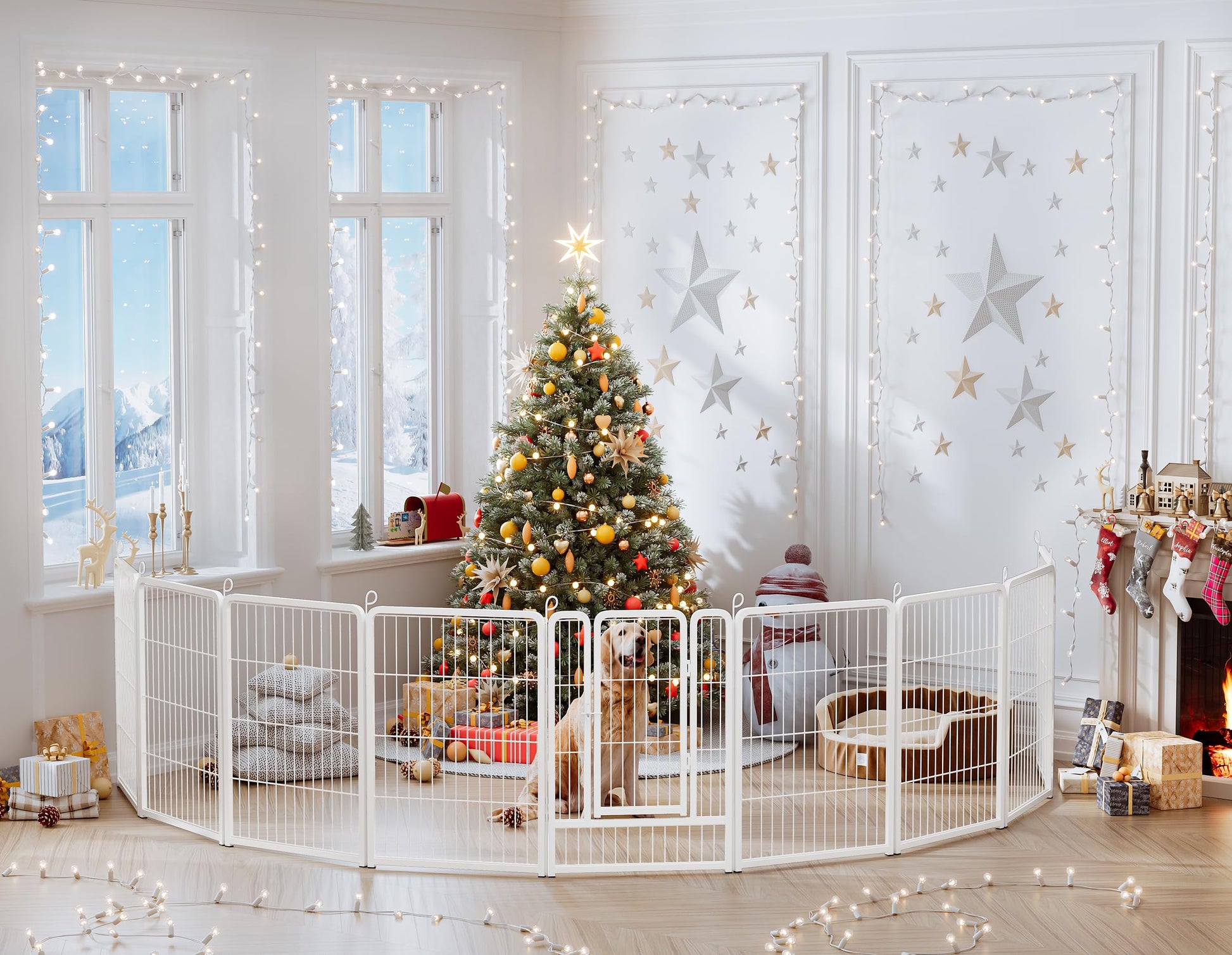 HOMIDEC Dog Pen β 8 Panel 80cm Foldable Pet Playpen with Door for Dogs, Puppies, Cats & Small Animals (White)