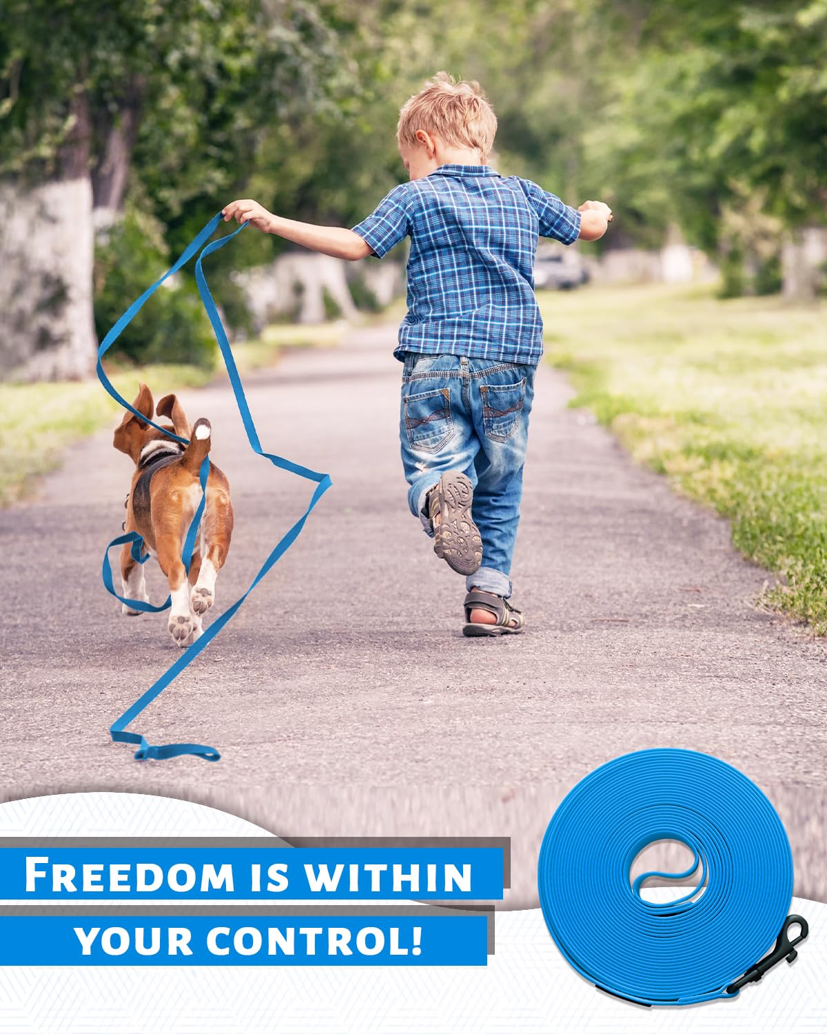 Looxmeer Dog Training Lead, 5M(16ft) Strong Extra Long Dog Lead for Small Medium Large Dog with Padded Handle & Storage Bag, Waterproof Dog Leash for Recall Tracking Hiking Hunting Obedience, Blue