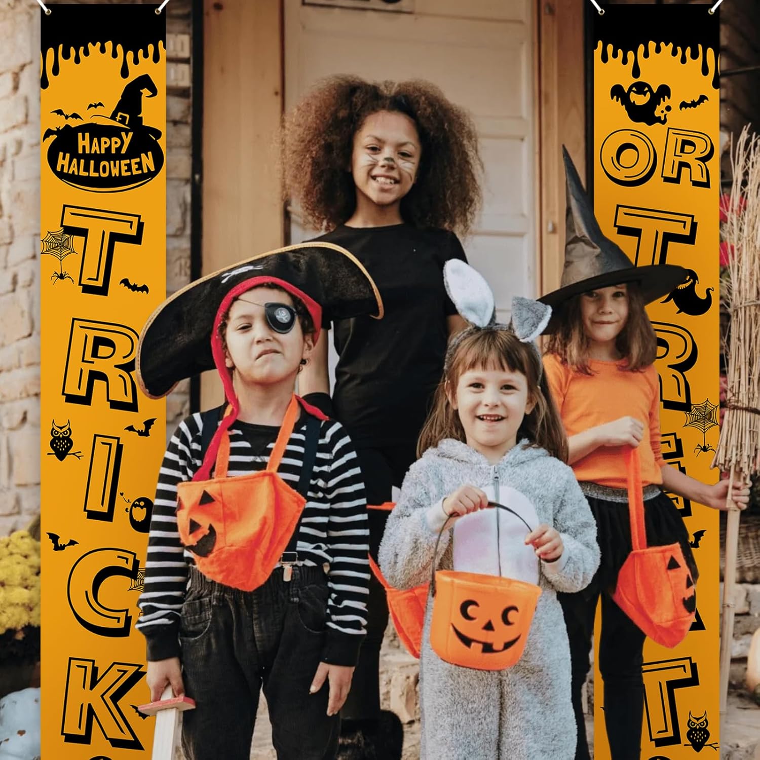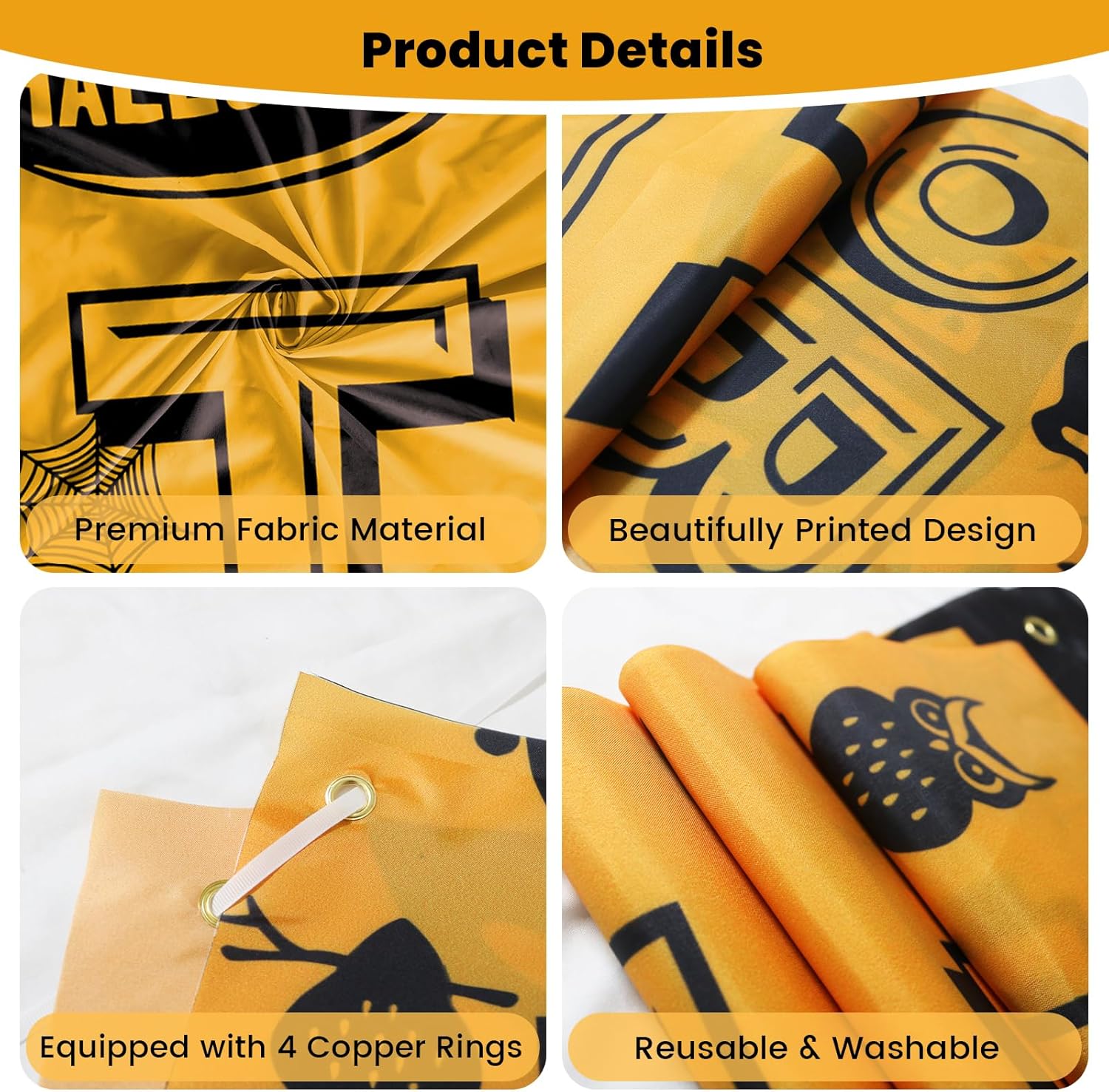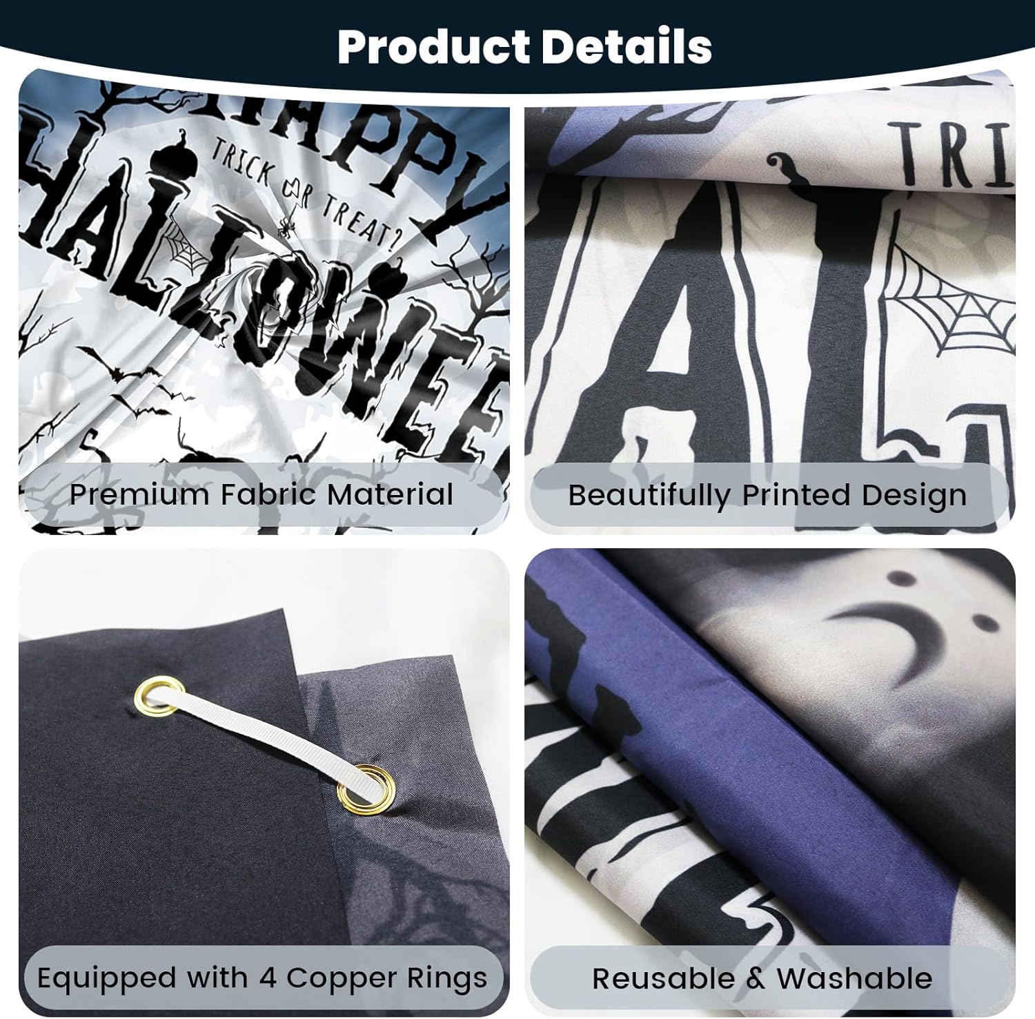 - [Easy to Use]: Halloween Banner has 4 copper rings and with 1pcs 5m rope. You can hold it in hand or hang it at home, in the garden, on the fence, wall, tree, etc.